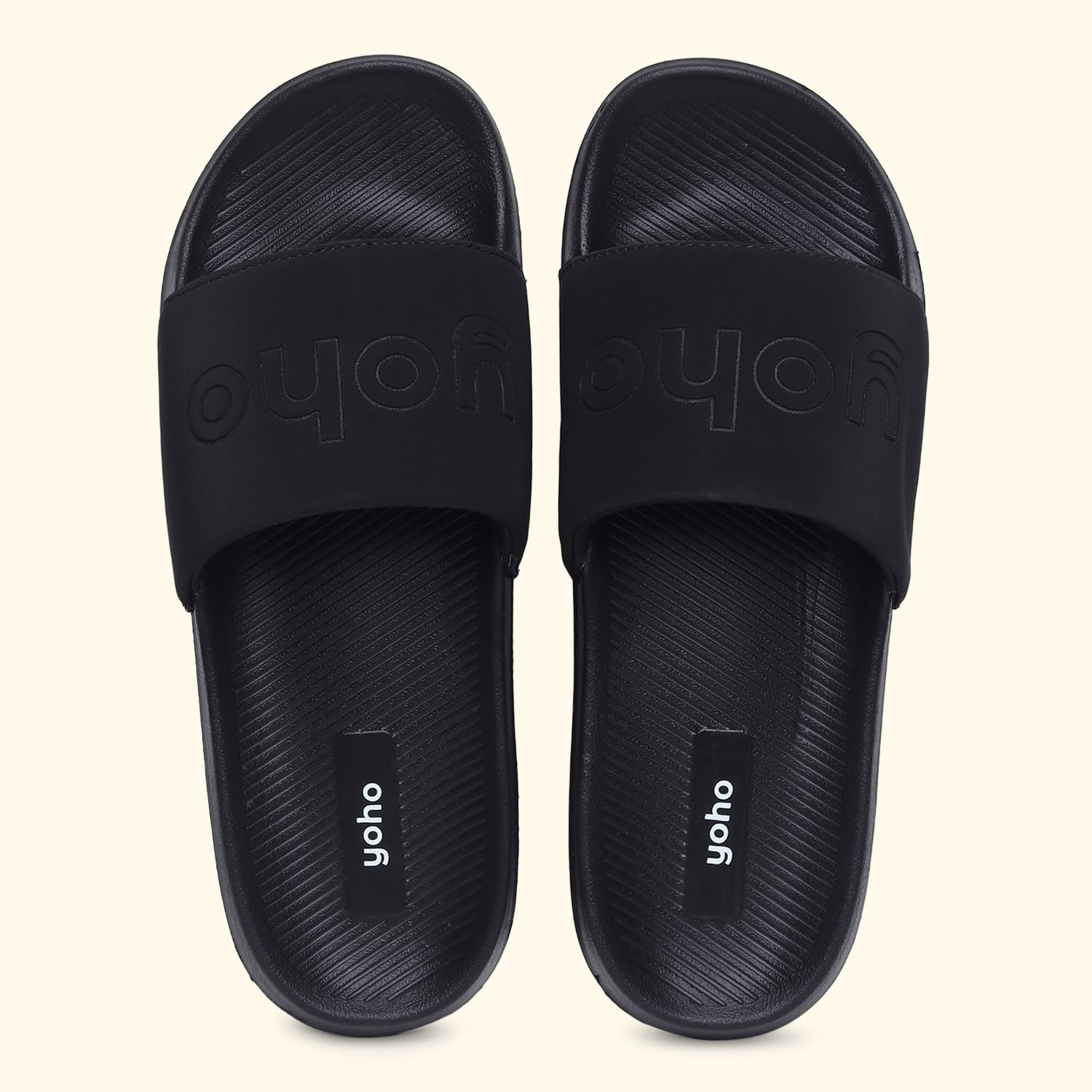 YOHO Oura Sliders for Men | Feather-Light EVA Sole | Durable PU Upper | Soft Lycra Lining | Cushioned Everyday Wear | Minimal Branding | Water-Resistant Design
